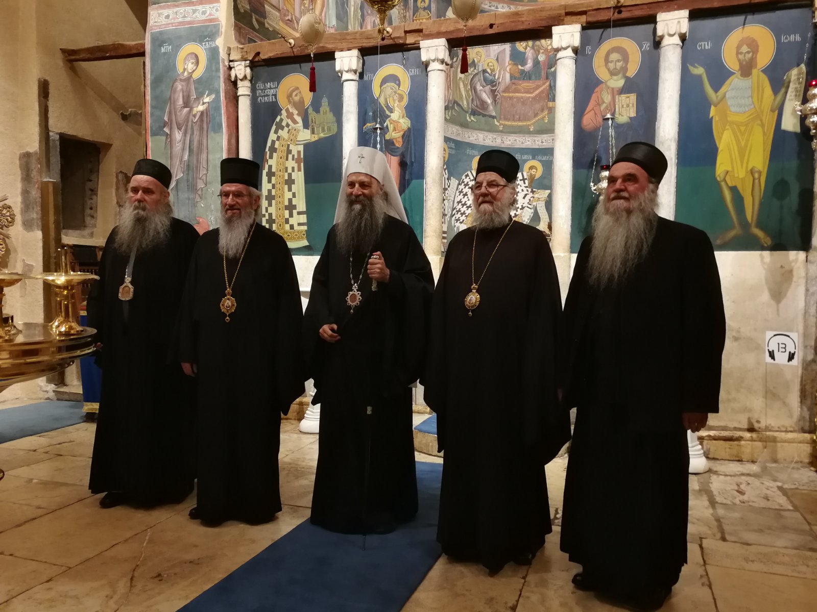 U patrijarhovoj pratnji su i članovi Sinoda: episkopi sremski Vasilije, šumadijski Jovan, zvorničko-tuzlanski Fotije i kruševački David, koji će sutra, posle Liturgije održati redovnu sinodsku sednicu, kao i sednicu Patrijaršijskog upravnog odbora.