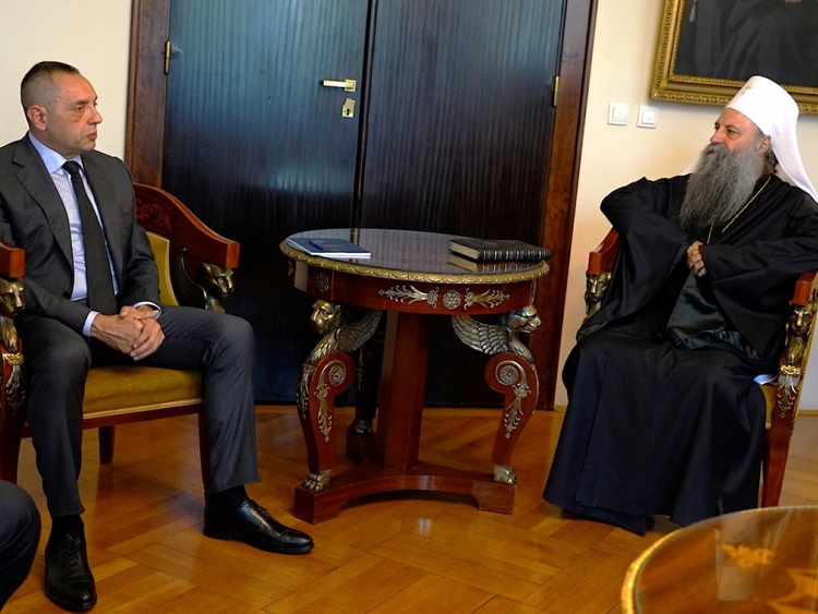 Ministar unutrašnjih poslova Aleksandar Vulin sastao se danas u Patrijaršijskom dvoru u Beogradu sa srpskim patrijarhom Porfirijem.