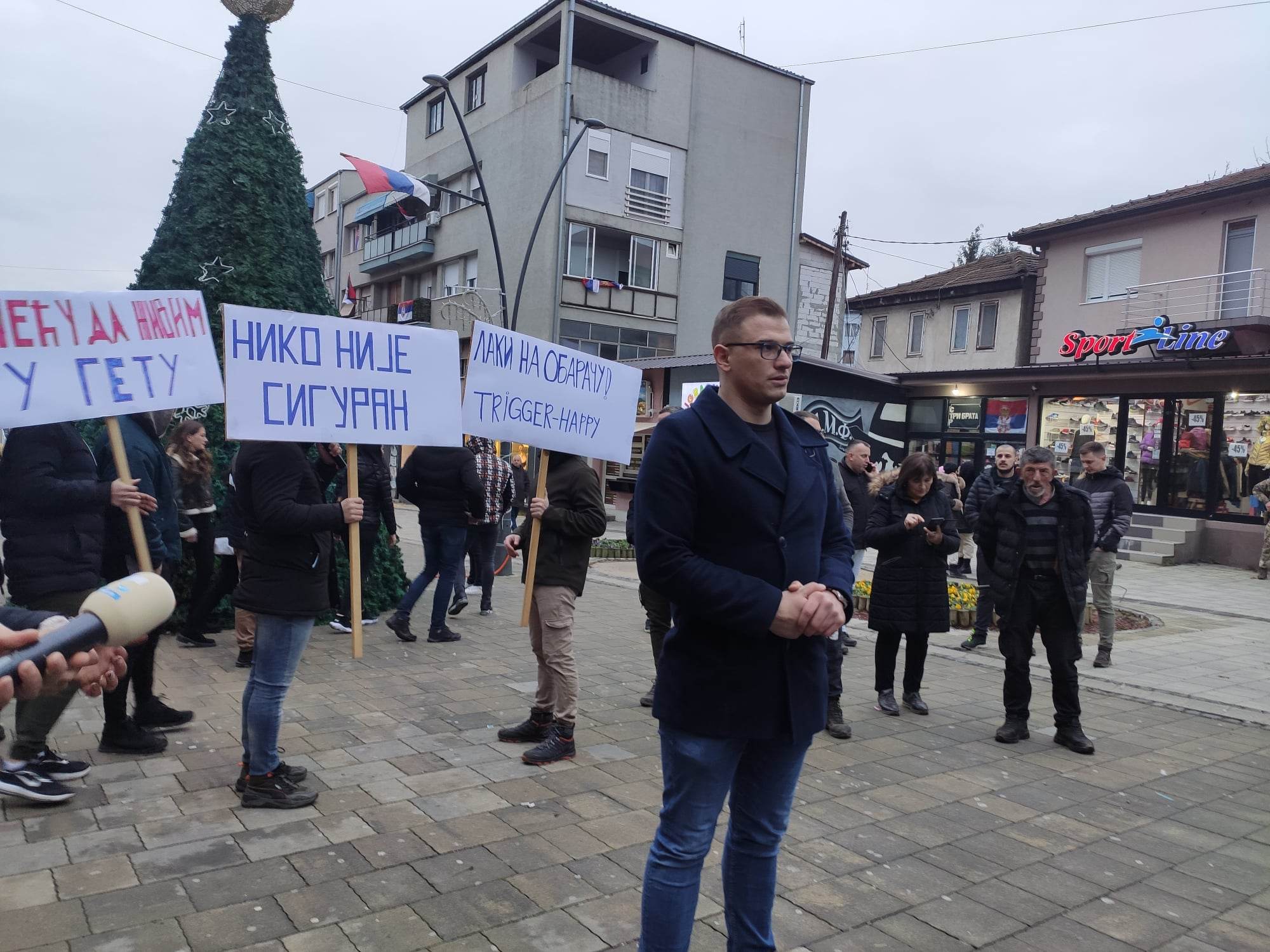 Na glavnom mitrovičkom šetalištu, u popodnevnim satima, okupilo se tridesetak građana koji su nosili transparente sa porukama: “Niko nije siguran”, “Neću da živim u getu”, “Laki na obaraču! Trigger-Happy”.