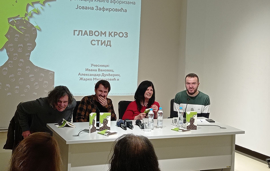 Zbirka aforizama „Glavom kroz stid“ mladog satiričara iz Kosovskog Pomoravlja Jovana Zafirovića je predstavljena večeras publici u Domu kulture „Gračanica“.