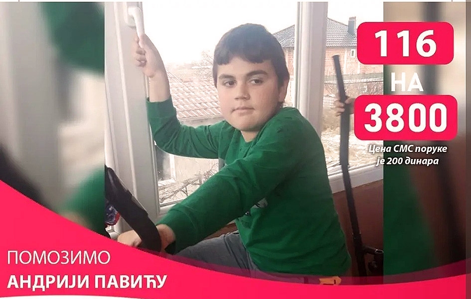 Pomoć za Andriju se može uplatiti i slanjem SMS poruke 116 na broj 3800 u okviru Fondacije Pokreni život.
