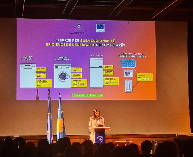 Minstarstvo ekonomije raspisalo je danas dva javna poziva za podršku građanima – za ulaganje u efikasne kućne aparte (veš mašine, frižidere ili zamrzivače i mašine za pranje sudova) i solarni sistem za zagrevanje sanitarne vode. Ukupna vrednost poziva je 15 miliona evra. Na konferenciji povodom lansiranja projekta prisustvovao je i premijer Kosova Aljbin Kurti, koji je rekao da će ovom šemom biti podržano 20.000 porodica na Kosovu.