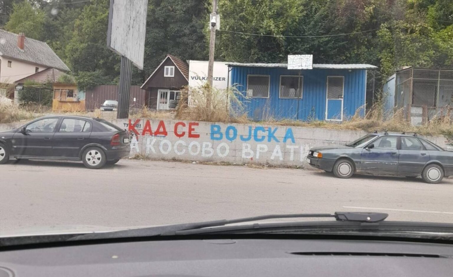 Reč je o natpisu „Kad se vojska na Kosovo vrati“, potvrđeno je naknadno iz policije za KoSSev.
