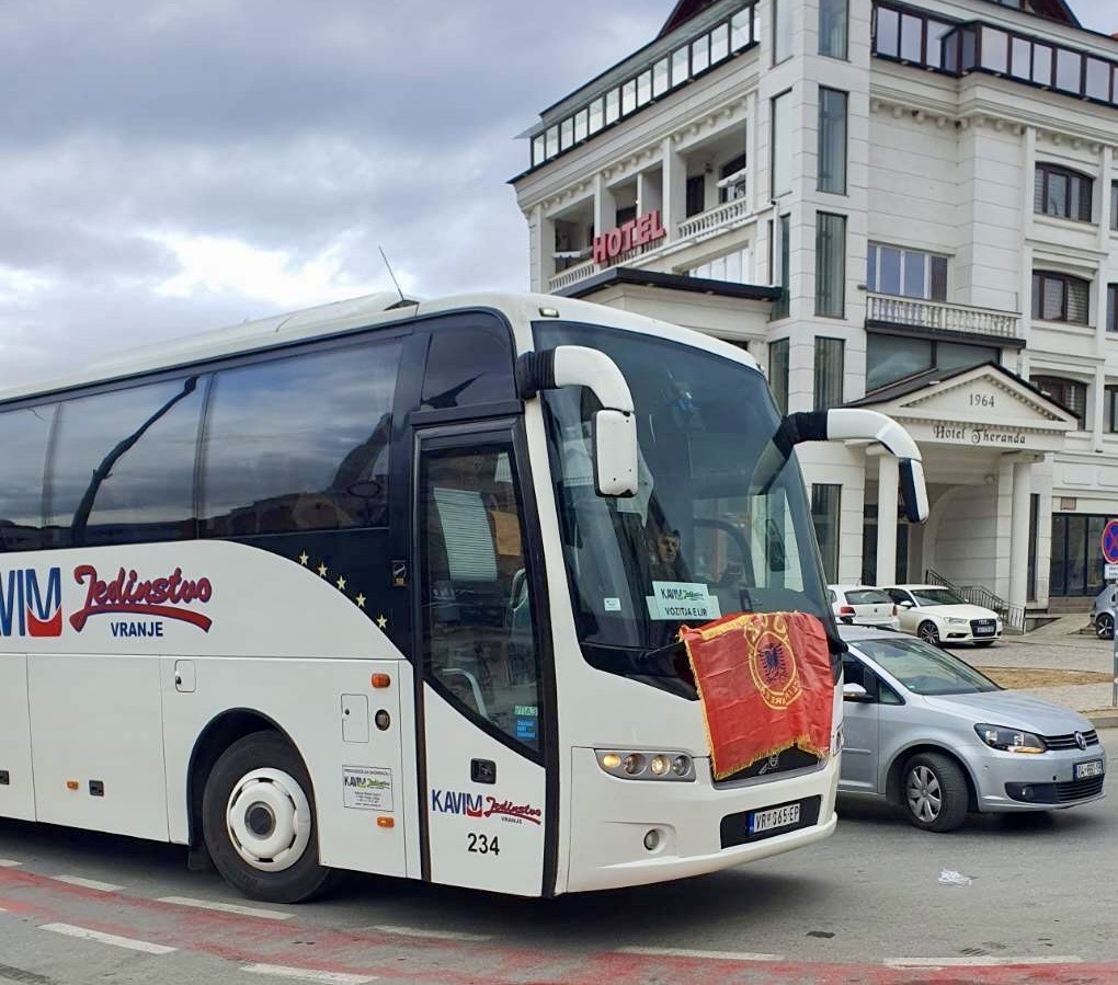 ,,Jutros se oko 8.45 časova u centru Prizrena, ispred hotela Teranda, dogodio incident kada je jedan kosovski Albanac okačio zastavu OVK na prednji deo autobusa, a zatim krenuo da verbalno provocira hodočasnike iz centralne Srbije“, – stoji u saopštenju.