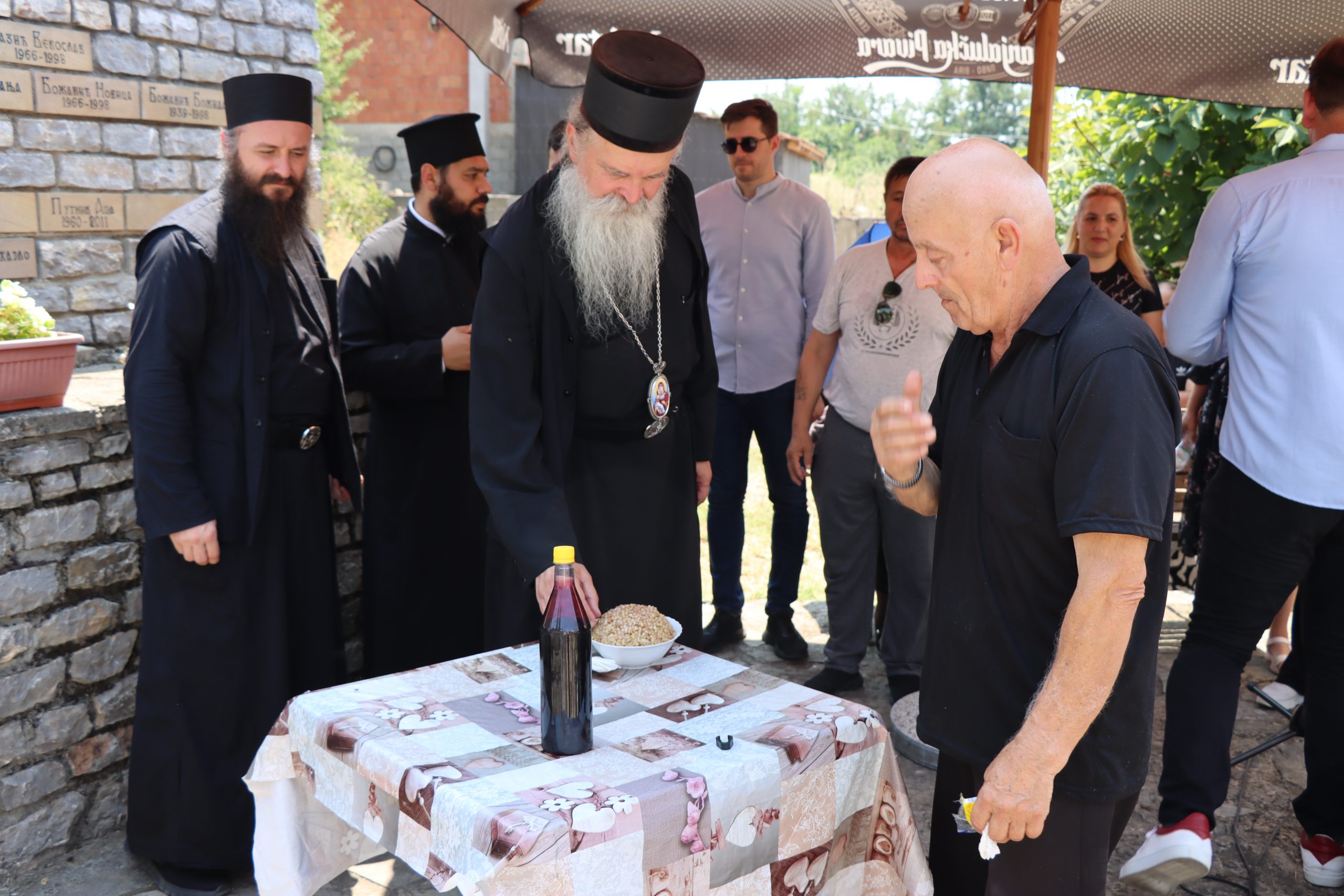 „Učinili smo parastos, pomen, sećanje, slugu božjih naših najmilijih koji su živote svoje položili za istinu i pravdu, nevine žrtve bezumnog sukoba i rata 1998. i 1999. godine. Kaže Gospod naš u Svetom jevandjelju da nema veće ljubavi nego da neko život svoj položi za bližnje. Ja bih se usudio da kažem da svi ovde spomenuti kojih se danas sećamo su položili život svoj za sve nas. Njih je Gospod izabrao i primio u večno obitalište, u rajsko naselje. Oni su mučenički postradali i oni su nevina žrtva za sve nas koji danas živimo na ovim prostorima i njihovom žrtvom i blagodaću Božjom evo mi 25 godina posle svih sukoba i stradanja živimo kao svoj na svome, na svojim ognjištima i čuvamo ovu blagoslovenu, svetu kosovsko-metohijsku zemlju. Naročito Orahovac, Velika Hoča i okolina, vekovno naše ognjište i zemlja koja nam je data od Boga da uživamo sve plodove njene i da je čuvamo, ali sećajući se na sve postradale da ne zaboravimo njihovu žrtvu ali i da se nikad ne odreknemo ovog  blagoslovenog prostora, ove zemlje za koju su oni postradali jer su bili svoj na svome“.