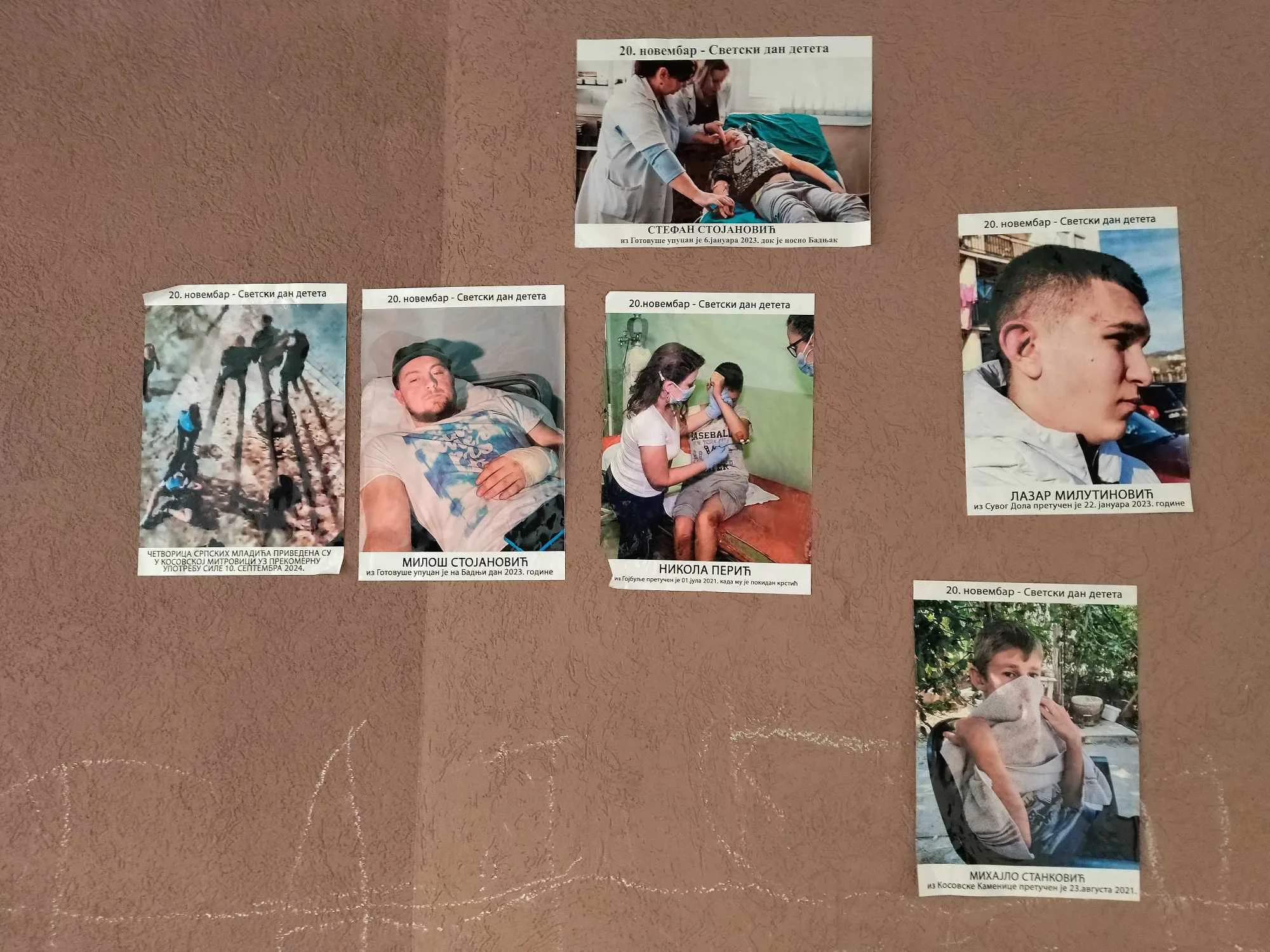 Današnji prikazuju fotografije srpske dece koja su, kako se navodi, pretrpela nasilje od strane Albanaca proteklih godina.