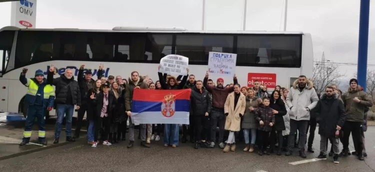 Autobus lokalnog autoprevoznika „Joe Travel“ krenuo je nešto pre sedam časova sa glavne autobuske stanice u Kosovskoj Mitrovici, a besplatni prevoz organizovao je vlasnik kompanije Goran Antić.
