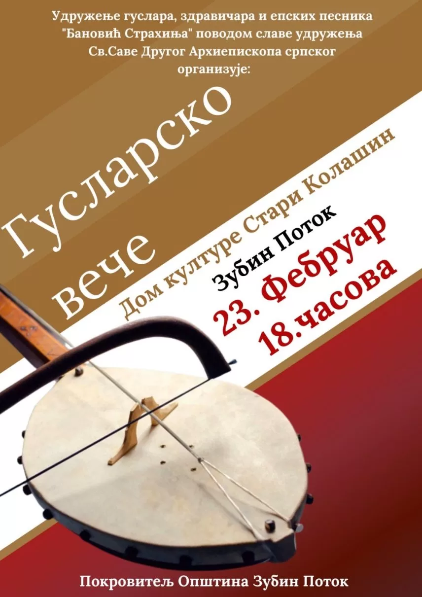Udruženje guslara, zdravičara i epskih pesama „Banović Strahinja“ organizuje guslarsko veče u Zubinom Potoku.