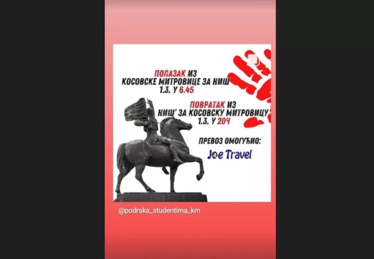 Prijavljivanje za besplatan prevoz vrši se putem Instagram stranice podrska_studentima_km, gde studenti mogu dobiti sve dodatne informacije o odlasku na protest.