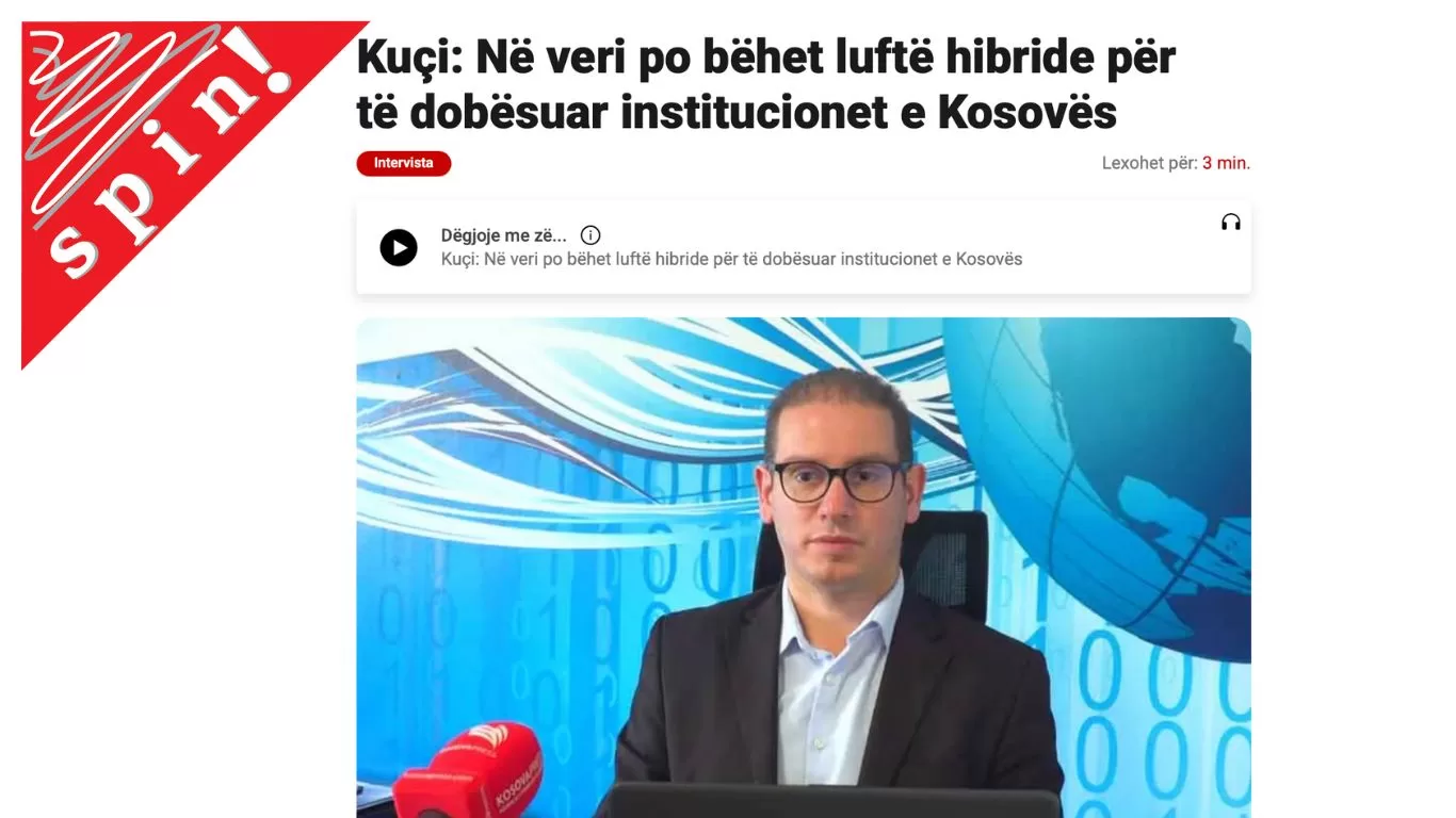 U tekstu, bez ikakvog truda da se ispoštuju osnovni profesionalni standardi, Kuči iznosi teške optužbe protiv organizacije NGO Aktiv i drugih NVO-a na severu, nazivajući ih delom „hibridnog rata“ protiv institucija Kosova.