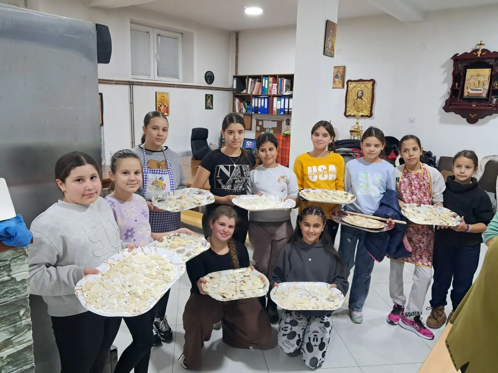 “Par godina unazad nekoliko žena iz Uspenjskog hrama i Uspenjske kapele iz Novog Sada šalju novac za podršku našoj deci ovde. Da se ne bi sve svodilo na slatkiše, došli smo na ideju da organizujemo radionice koje će biti korisne za decu ali i za sve nas. Da se udalje od mobilnih telefona, da se okrenu druženju, a opet da uče nešto što je vekovima prisutno u srpskoj tradiciji i što će sutra kao majke i domaćice da rade u svojoj porodici. I uspeli smo. Deca se odazivaju, marljivo uče i vredno rade”, kazala je.