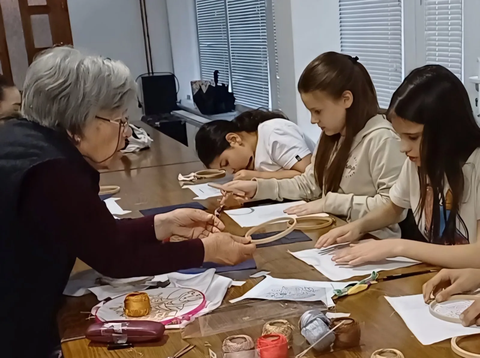 Ovo je većini učesnica bio prvi susret sa tehnikom veza, pa su na početku radionice učile kako se šema prenosi sa papira na platno, kako se namešta đerđef, a zatim su krenule i sa vezom.